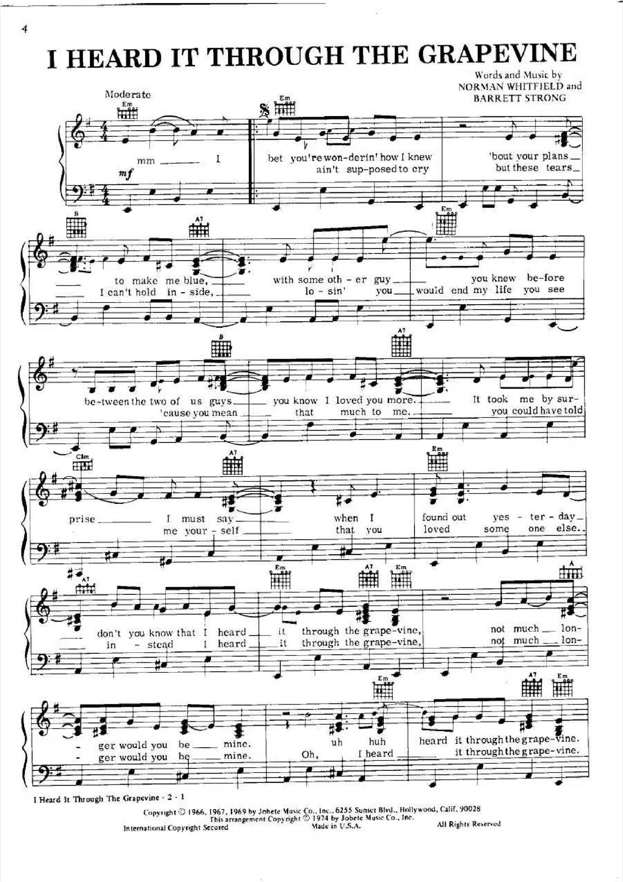 I Heard It Through The Grapevine Noten Klavier Gesang Gitarre Von Marvin Gaye Pdf Digitaler Zugang Oktav
