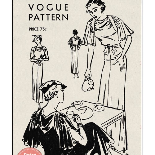 1939 Vintage Sewing Pattern B36in Cape Evening Dress R958 By Pictorial 8119 The Vintage Pattern Shop